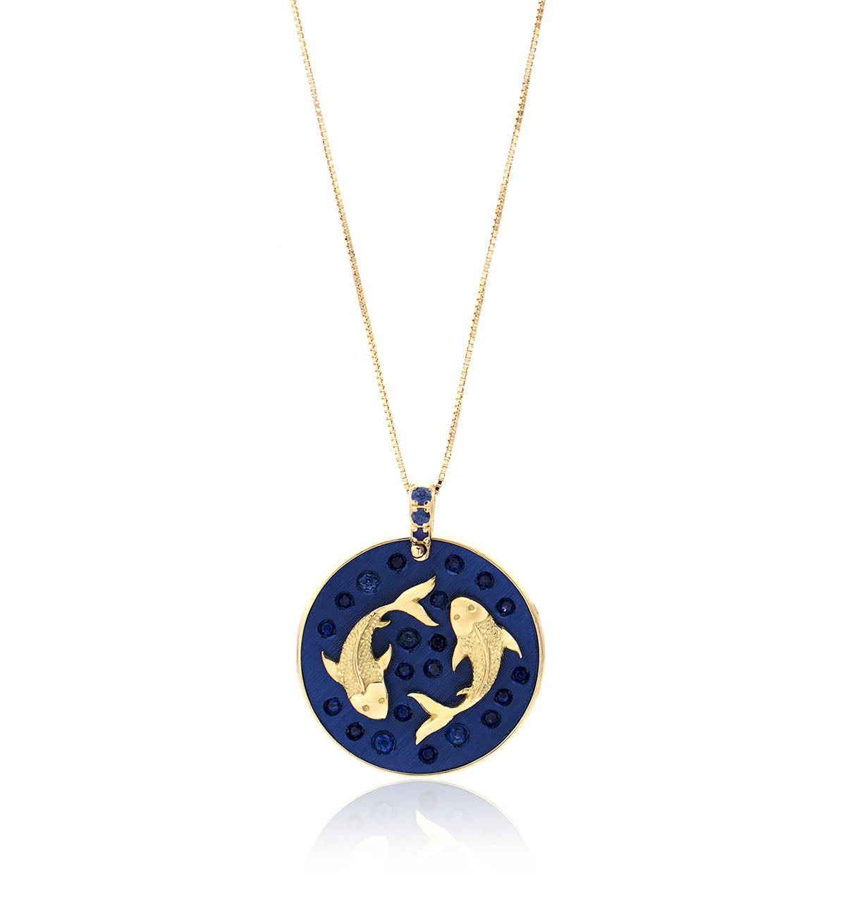 18kt yellow gold, silver and titanium, 0.35ct blue sapphires - Pendant: 20mm - Necklace length: 45cm